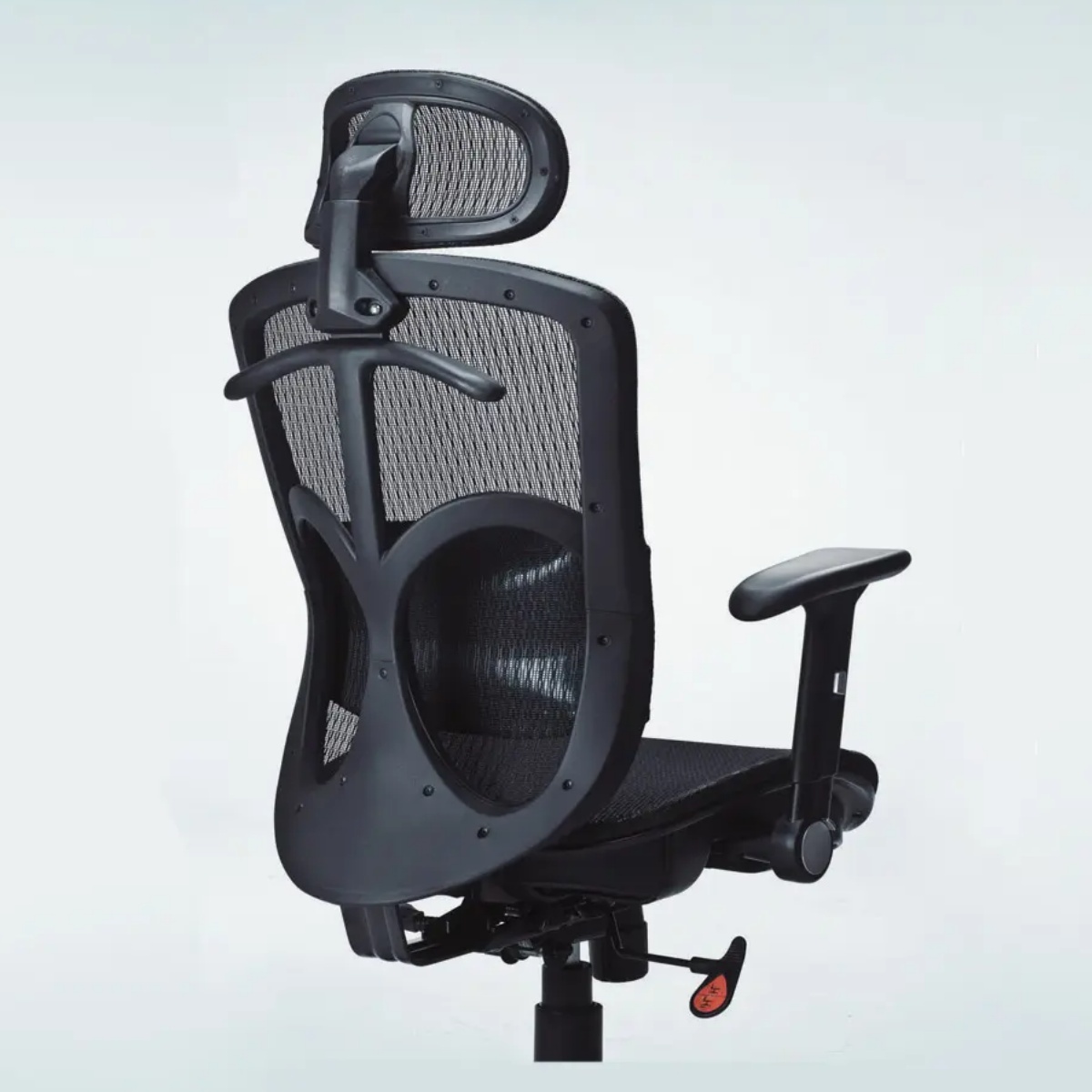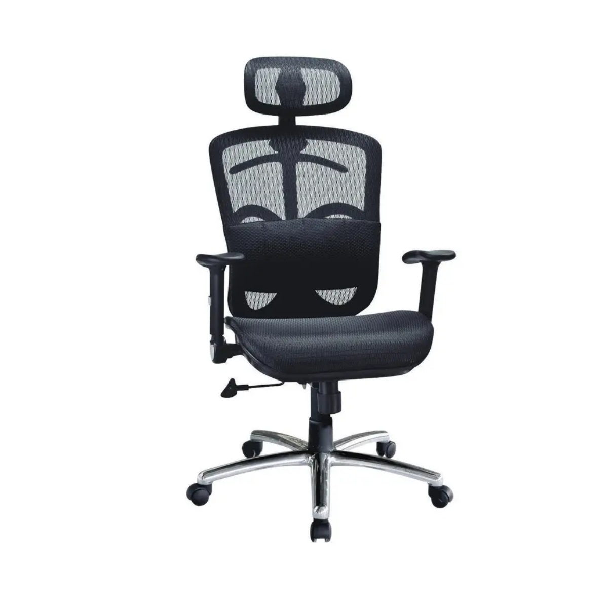 大型全黑網辦公椅,椅背衣架/氣墊護腰/升降扶手/鋁合金腳。