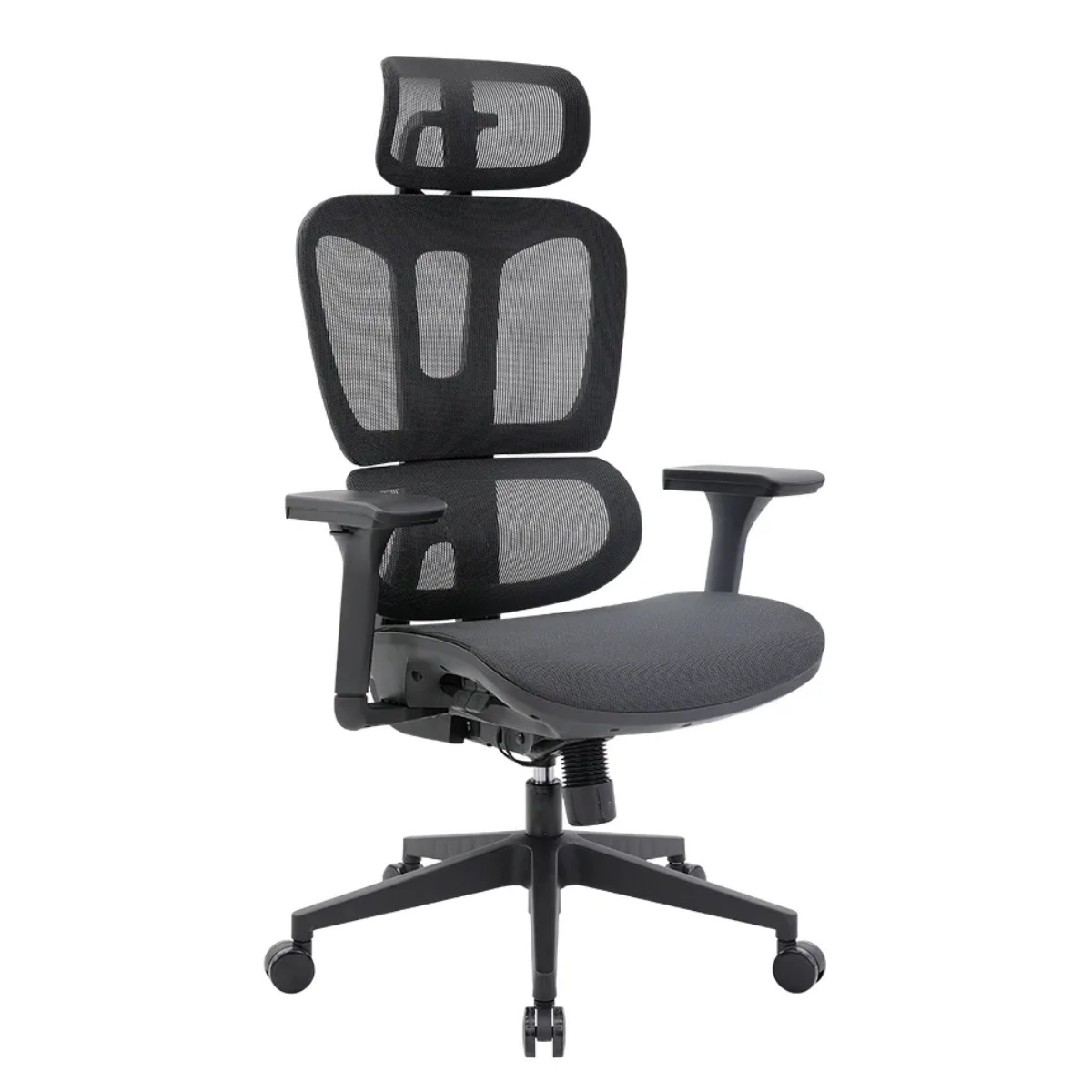 椅背:尼龍加纖射出成形,彈性全網腰墊