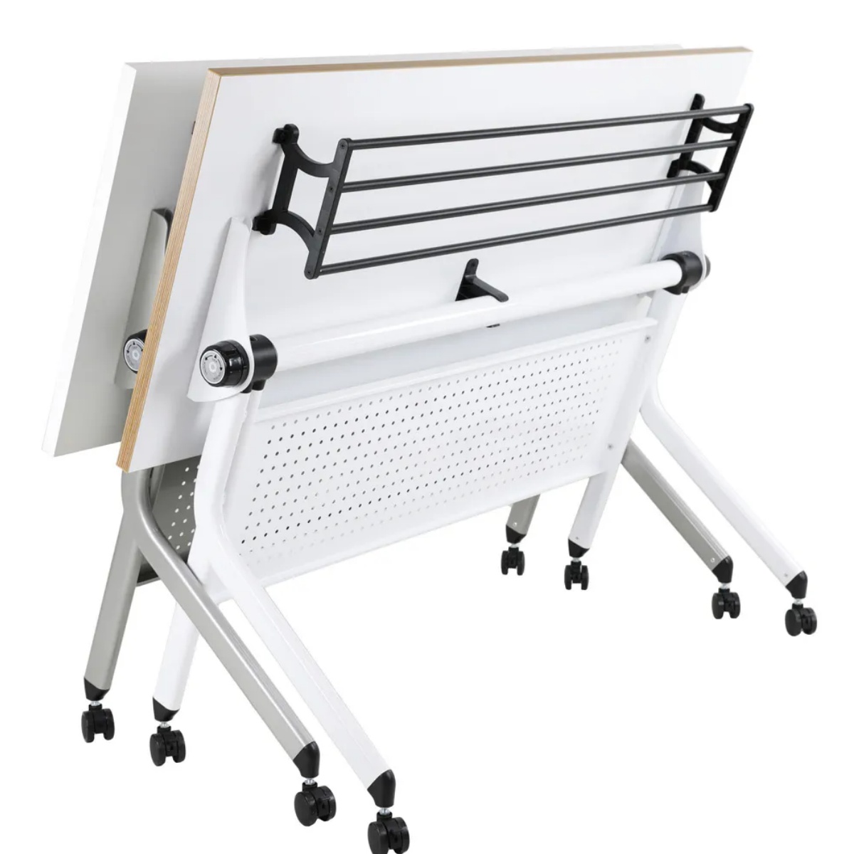• 腳輪:前後輪為PU煞車輪,附安全鎖,可做固定和穩定折疊桌