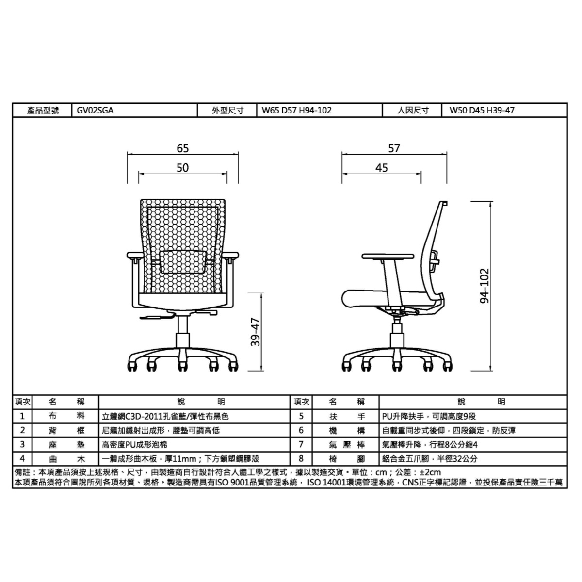 椅背:尼龍加纖射出成形,腰墊可調高低