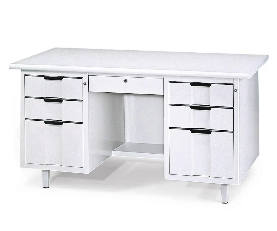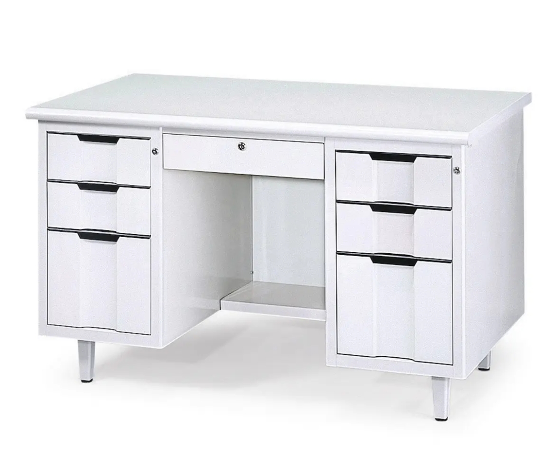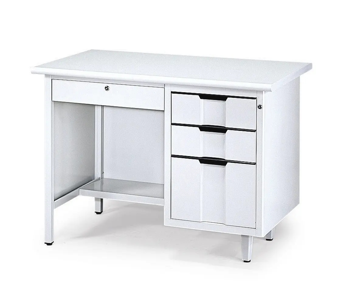 鋼製桌體耐重穩固,附中抽、三抽屜收納,適合各類辦公空間。
