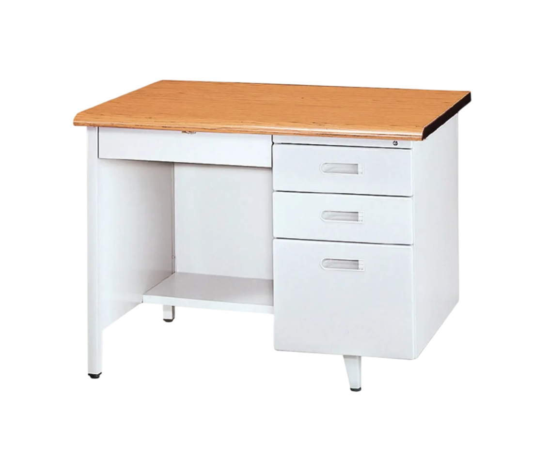 鋼製桌體耐重穩固,附三抽屜收納,適合各類辦公空間。