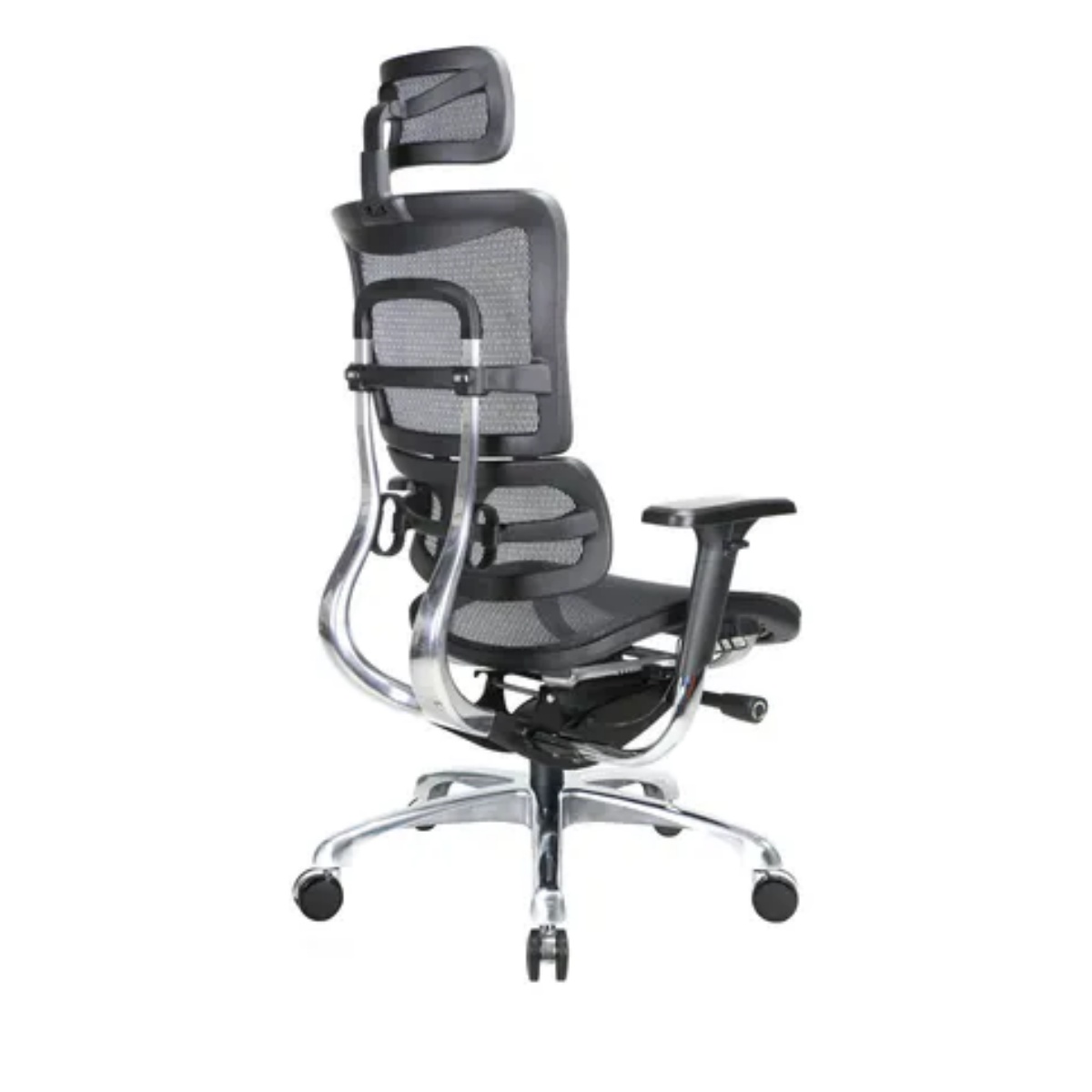 椅背:尼龍加纖射出成形,可調高低。彈性全網腰墊