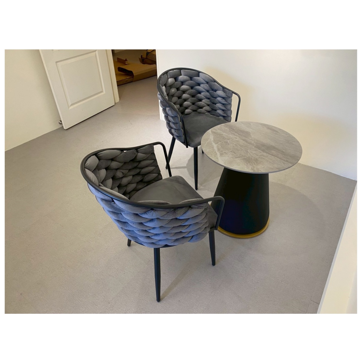 馬修60圓岩板矮桌:灰岩板/黑皮圓腳架